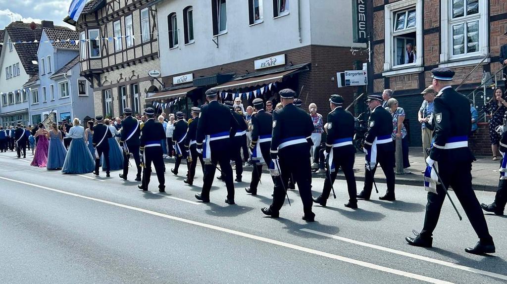 Nach den Begrüßungsreden der Gastgeber nahmen wir am großen Festumzug teil – ein beeindruckendes Bild aus Musik, Uniformen und Fahnen, das die Gemeinschaft der Schützenvereine aus Beverungen und Umgebung widerspiegelte.