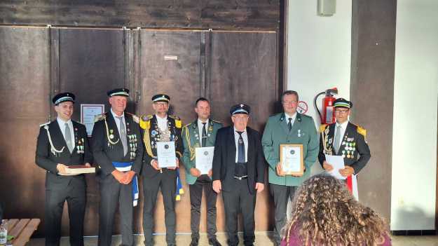 Auch wurden dieses Jahr besonders viele Schützen zu ihrem Vereinsjubiläum ausgezeichnet, insgesamt 28 Jubilare konnte Oberst Kleinschmidt gratulieren. Für beeindruckende 60 Jahre Mitgliedschaft wurden Theo Behler, Theo Sonntag und Erich Trute ausgezeichnet.