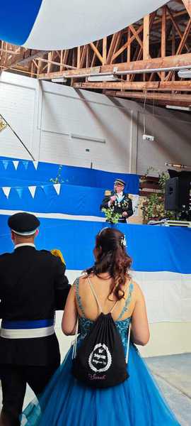 Nach der Ankunft nahmen wir am kleinen Festumzug zur Halle teil und reihten uns feierlich mit ein.