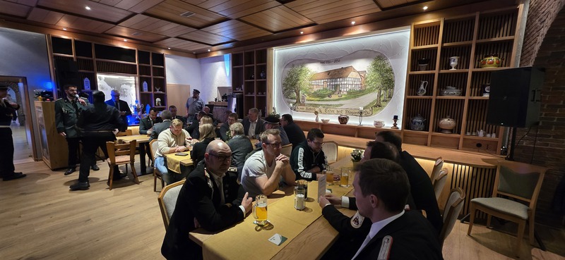 Nach dem offiziellen Teil des Abends wurde mit Freibier ausgiebig gefeiert. Bis in die frühen Morgenstunden tauschten die Schützen Geschichten und Erinnerungen aus